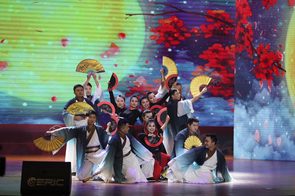 隨著音樂響起,“楚國男子”白衣飄飄,手持紙扇,“江南女子”搖曳身姿,執(zhí)扇起舞。公司參加表演的職工在舞臺上大放異彩,為現(xiàn)場和觀看直播的觀眾奉上一場美輪美奐的文化盛宴,既再現(xiàn)了楚國藝術(shù)的奇異想象和浪漫色彩,也展現(xiàn)了江南點軍的神秘風(fēng)情和深遠文化。