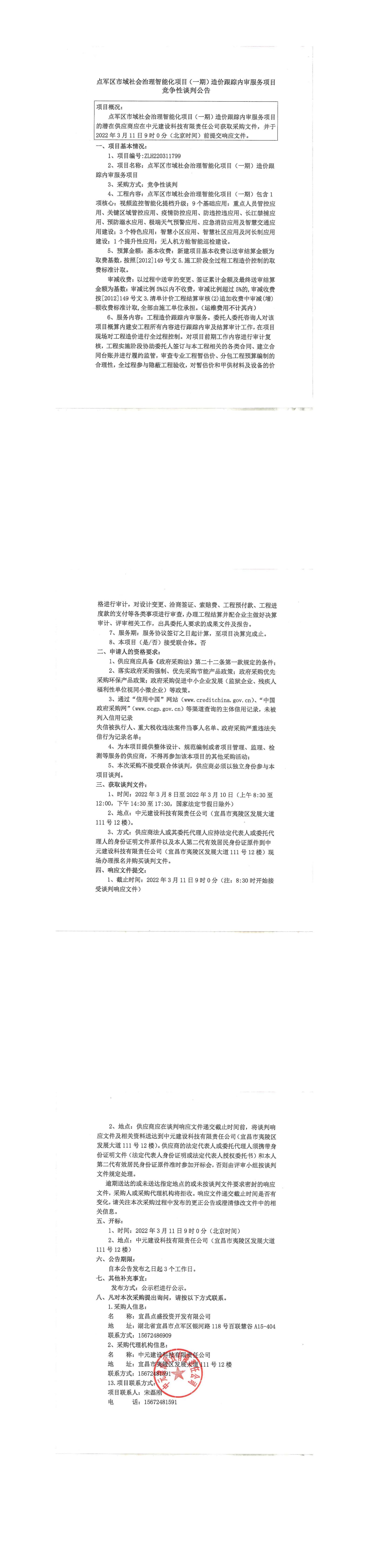 點(diǎn)軍區(qū)市域社會(huì)治理智能化項(xiàng)目(一期)造價(jià)跟蹤內(nèi)審服務(wù)項(xiàng)目談判公告