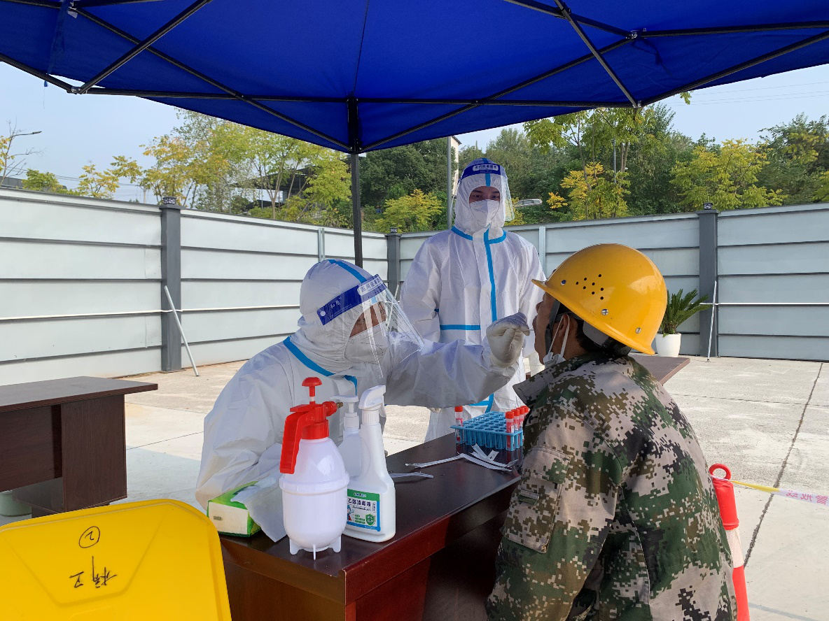11月5日,為響應(yīng)區(qū)政府防疫部門(mén)有關(guān)防疫要求,全面筑牢疫情防線,切實(shí)保障全體施工人員的身體健康和生命安全,點(diǎn)盛公司聯(lián)動(dòng)點(diǎn)軍區(qū)橋邊衛(wèi)生院和國(guó)機(jī)集團(tuán)在奧錦花園安置房(三期)項(xiàng)目部開(kāi)展核酸采樣試點(diǎn)運(yùn)行工作。取得核酸采樣合格證的奧錦花園三期項(xiàng)目安全員李懿、龍明超為本項(xiàng)目300余名工人順利的完成了核酸采樣工作。