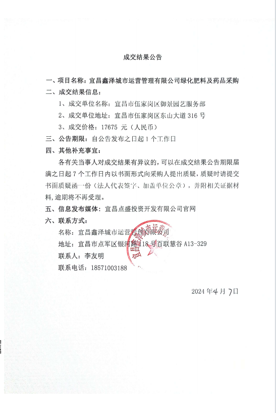 宜昌鑫澤城市運(yùn)營管理有限公司綠化肥料及藥品采購項目詢價公告