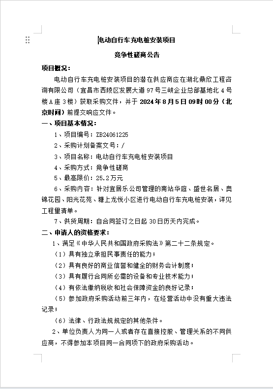 電動自行車充電樁安裝項目競爭性磋商公告