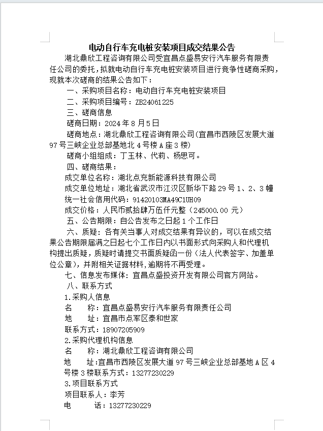 電動(dòng)自行車充電樁安裝項(xiàng)目成交結(jié)果公告