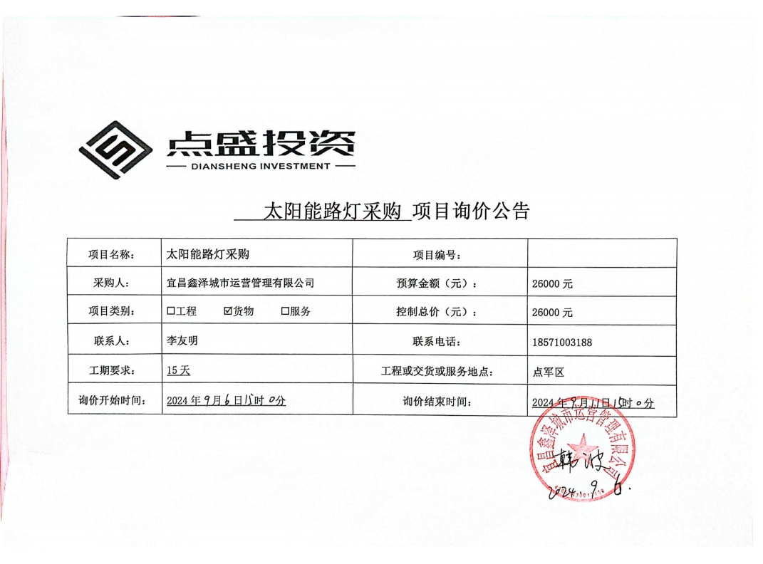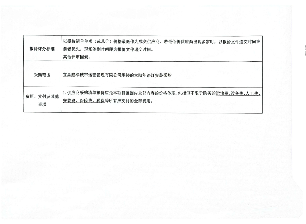 宜昌鑫澤城市運營管理有限公司太陽能路燈采購項目詢價公告