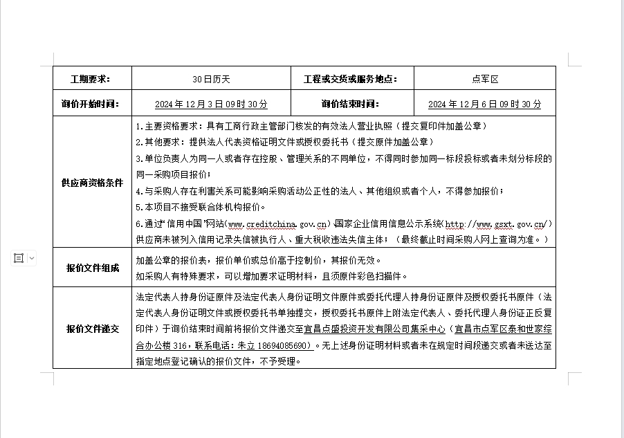 詢價(jià)公告