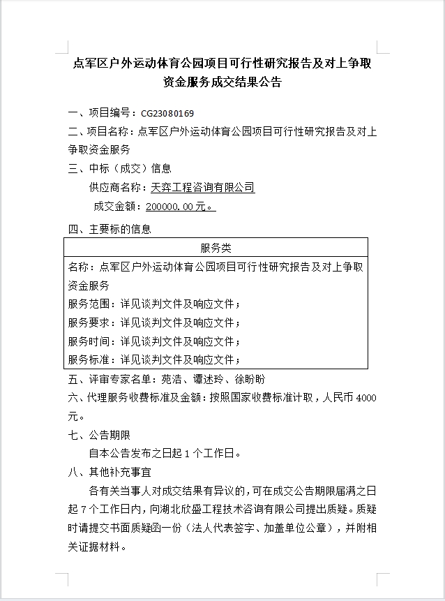 點軍區(qū)戶外運動體育公園項目可行性研究報告及對上爭取資金服務(wù)成交公告