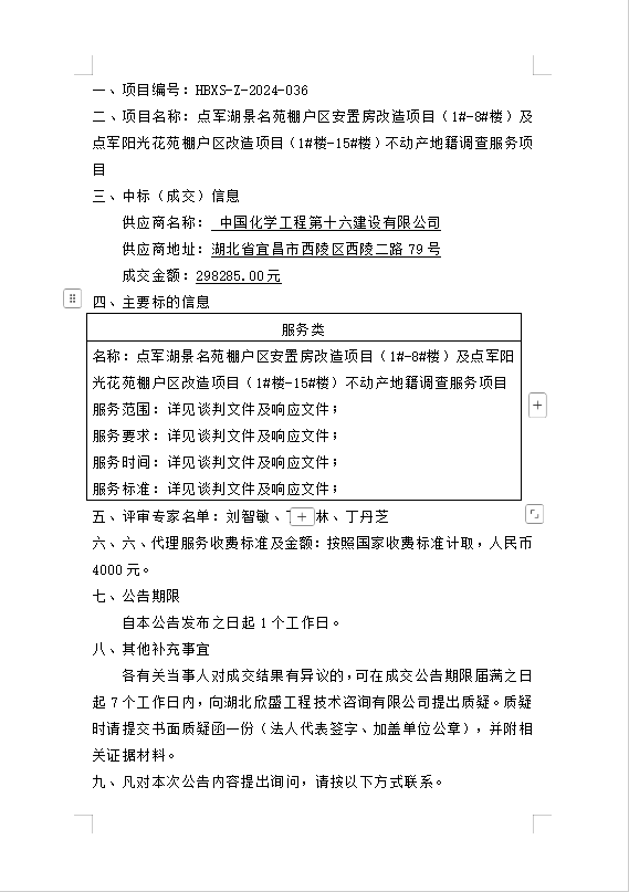 點(diǎn)軍湖景名苑棚戶區(qū)安置房改造項(xiàng)目(1#-8#樓)及點(diǎn)軍陽(yáng)光花苑棚戶區(qū)改造項(xiàng)目(1#樓-15#樓)不動(dòng)產(chǎn)地籍調(diào)查服務(wù)項(xiàng)目成交公告